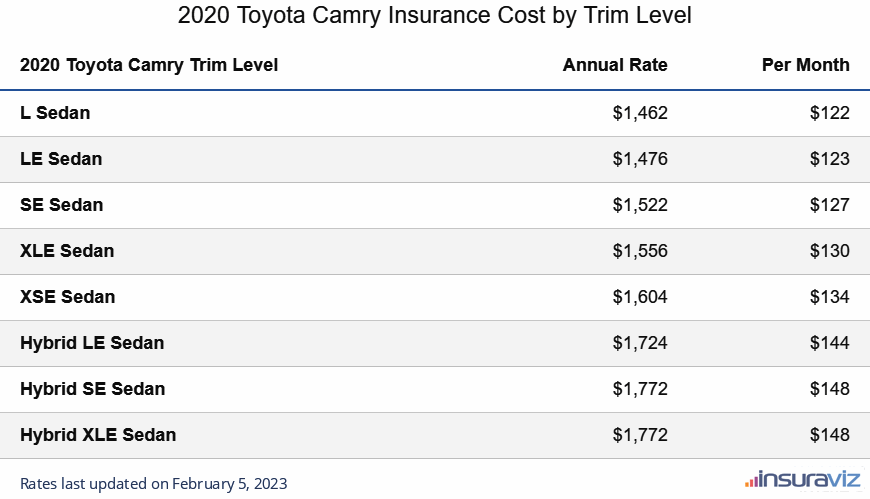 Toyota Camry Insurance Cost 2021 Rates Comparisons Rankings