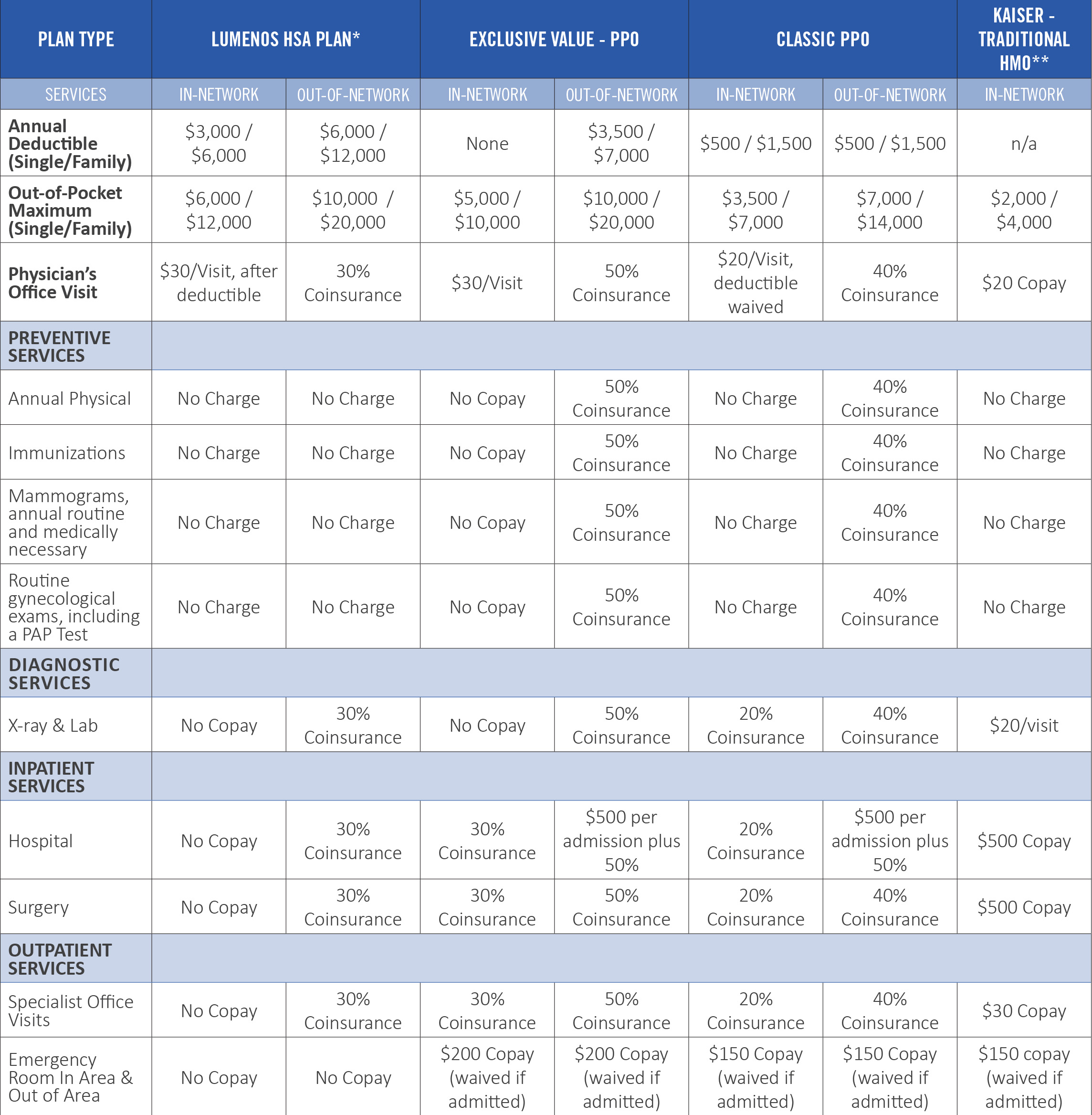 Accident/injury benefit amount accidental death employee $100,000 spouse $40,000 Per covered accident) $1,000 intensive care admission (same as above) $1,500 hospital confinement (per day up to 365 days) $200 intensive care confinement (per day up to 15 days) $400 medical imaging test (once per accident) $200 outpatient surgery facility service (once per accident) $300 pain management (epidural, once per accident) $100